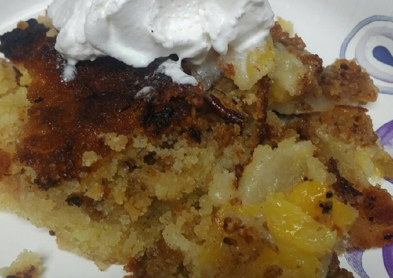 I was walking outside and saw that the pears were ready and the pineapple was ripened also. I remembered I had apples and peaches in the fridge. I thought, yep buckle time again.