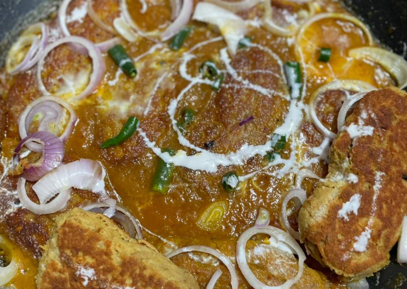 - Add in yogurt n mix well cook till oil separates than add 2tbsp of cream n mix well than add shami kababs. N cook it on low flame..
