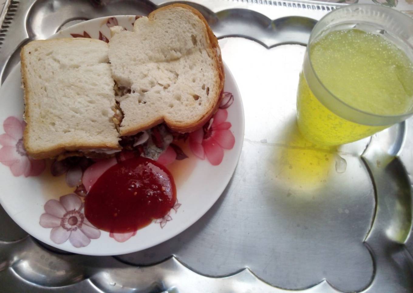 - Yummy instant sandwich ready hai..dew aur ketcup ke sath enjoy karein